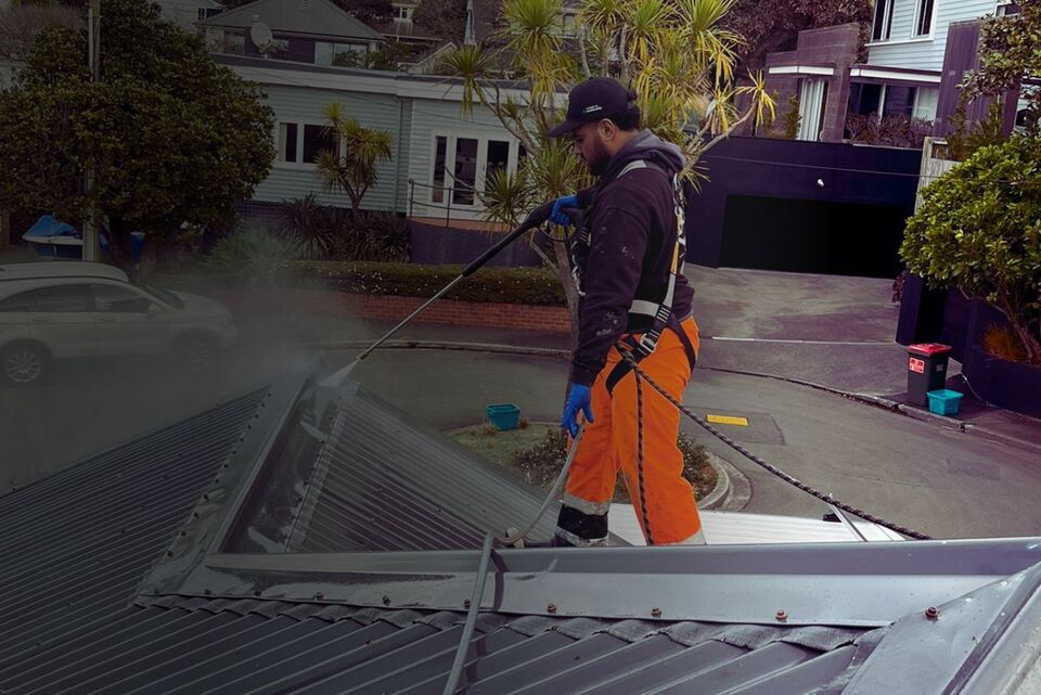 Commercial Roof Washing: Safe and effective cleaning for commercial roofs.